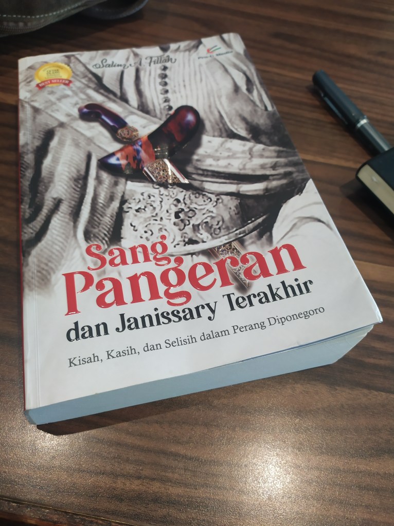 Tiga hari terakhir dimasa libur panjang akhir tahun ini saya menuntaskan membaca sebuah buku karangan Salim A. Fillah, Sang Pangeran dan Jannisary Terakhir. Cukup tebal, 631 halaman. Bagi saya yang biasanya sulit menuntaskan sebuah buku tebal hanya dalam beberapa hari, ini adalah sebuah kebanggaan. Sepertinya saya memang perlu menambah porsi bacaan fiksi untuk menjaga kontinuitas dan kecepatan membaca. Selama ini memang lebih sering buku-buku non-fiksi. Kepala sedikit lebih panas jika dibandingkan membaca buku fiksi.